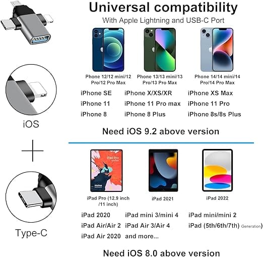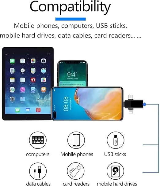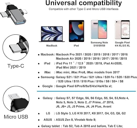 • 【3-in-1 OTG】3 interfaces for you ! It has 3 ports, compatable with lightning Port + Micro USB Standard Port + Type C port. Easy to switch between lightning Port and Micro USB and Type C!One machine with multiple functions. Suitable for all smartphone & Devices