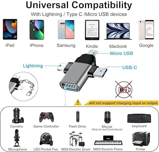 • 【Excellent Compatibility】When you need to use an Phone to work, connect the converter and keyboard, you can process your documents more quickly. Of course, it also supports gamepad,digital camera, usb flash drive, mouse, headphone, microphone, electric paino, mixer compatible with iPhone, Type-C Smartphone & Android Devices