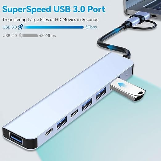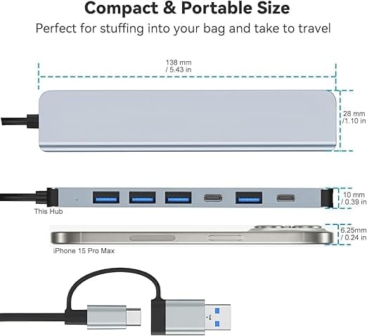 - 【High-Speed multiple USB port for laptop Data Transfer】: This USB C Hub and USB A Hub are equipped with multiple USB Hub 3.0 ports, this hub enables fast data transfer speeds of up to 5Gbps, allowing you to transfer large files, photos, and videos in seconds. Enjoy a seamless and efficient workflow with this powerful expansion dock.