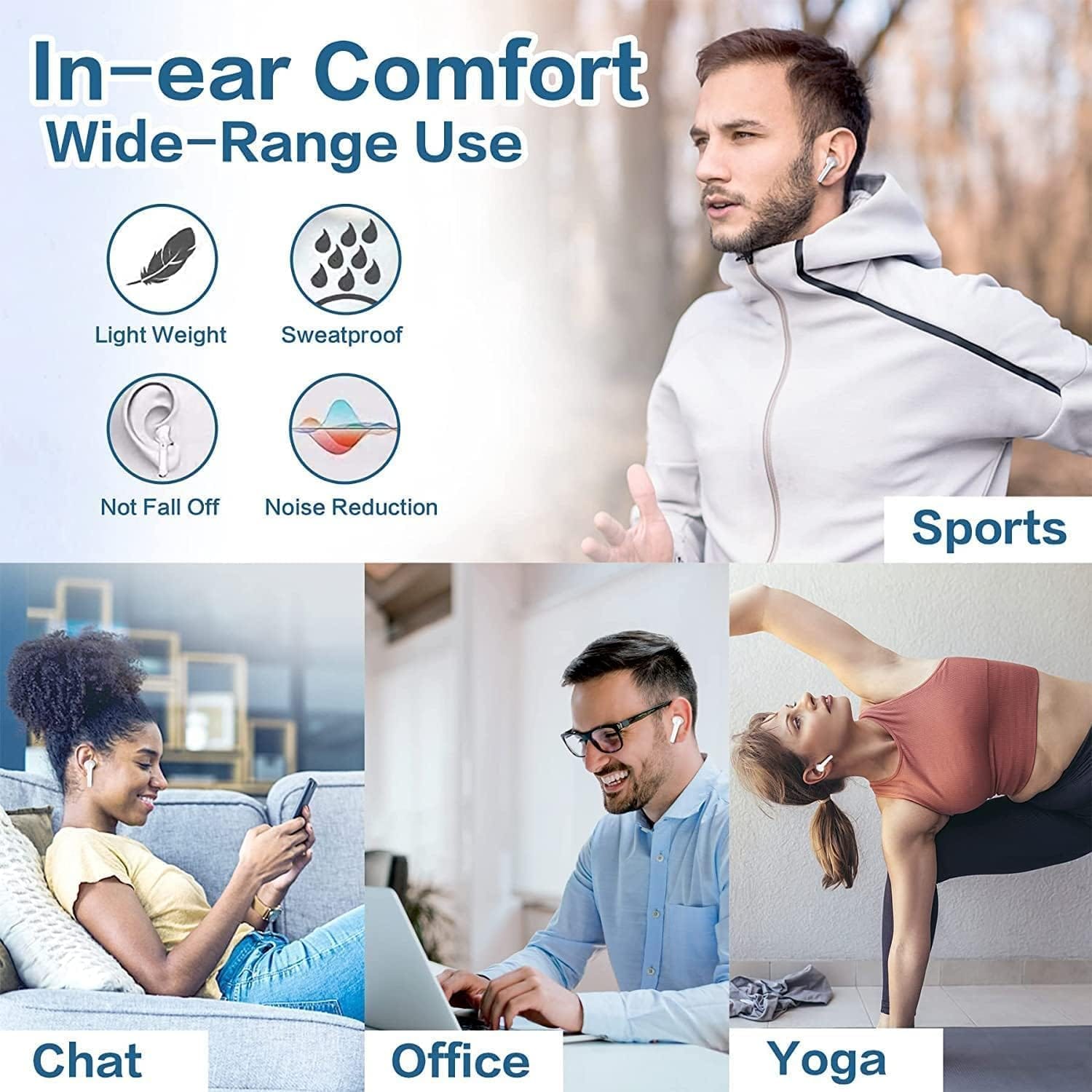 - ✅【Ultra lightweight and compatible for small ear】 : The surface and Angle of earbuds in-ear part have been polished and refined repeatedly to achieve a balance between beauty and comfort and make it comfortable to wear. Likewise, a single earbud weighs only 3g, making it as light as a feather and discreet in the ear. Ergonomic design provides a comfortable and secure fit that doesn’t protrude from your ears especially for Sports, Workout, Gym.