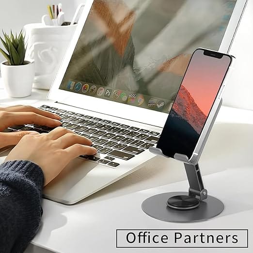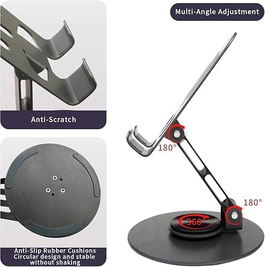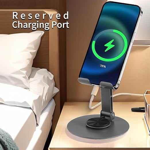 【Anti-Slip & Scratch-Proof】 Equipped with rubberized padding, this stand prevents slipping and protects your phone from scratches, keeping it stable even on smooth surfaces.