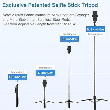 • 📌 eTechtron Universal Tripod Stand ✔ Sturdy Build: Lightweight yet durable aluminum construction for long-lasting performance.
